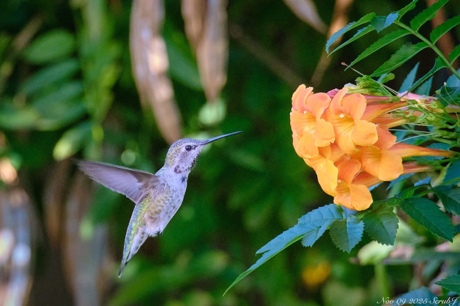 A female Anna’s hummingbird was enjoying a sip of nectar behind Caltech Hall. (Credit: Jieyu Zheng)