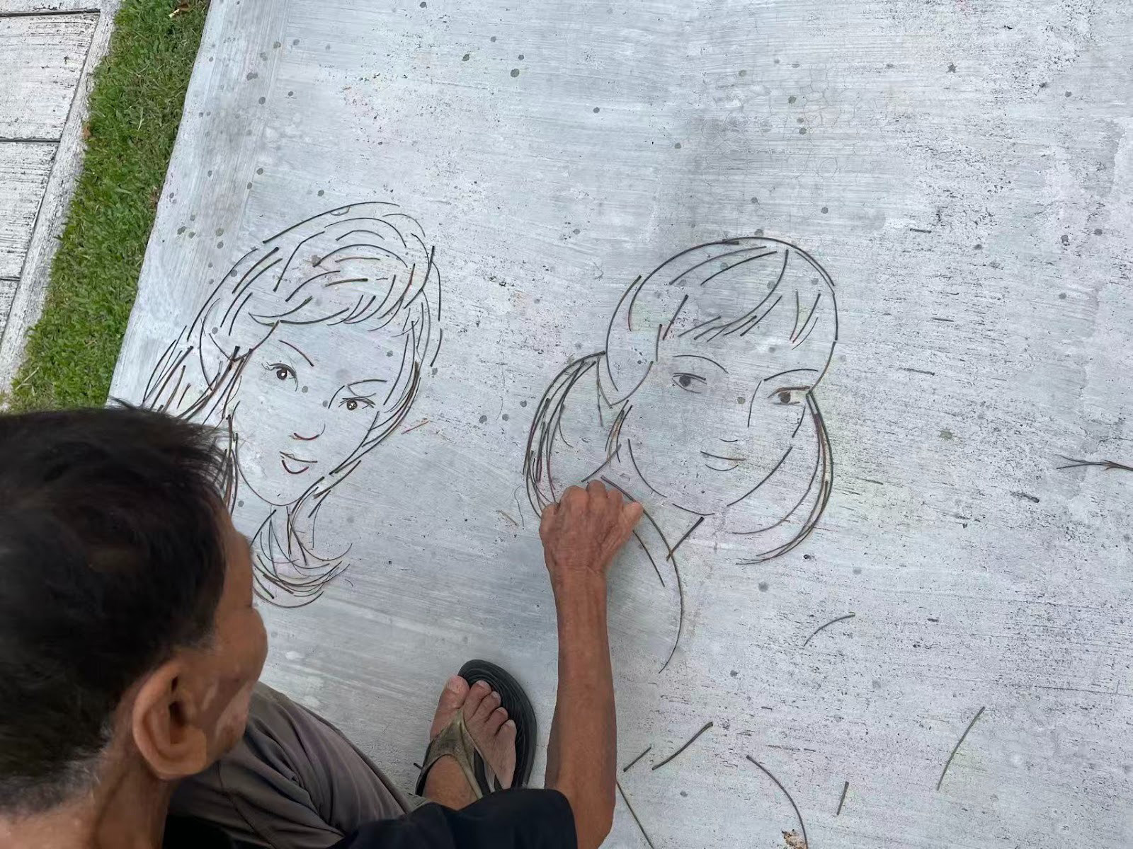 It’s a hot Singapore day (91.4°F, 80% humidity) and I came across a reel about an elderly man named Uncle Cheng who creates portraits of people on the ground by placing fallen twigs. I thought this was really cool and many people in the comment section agreed, saying that his work should be placed in a museum.
