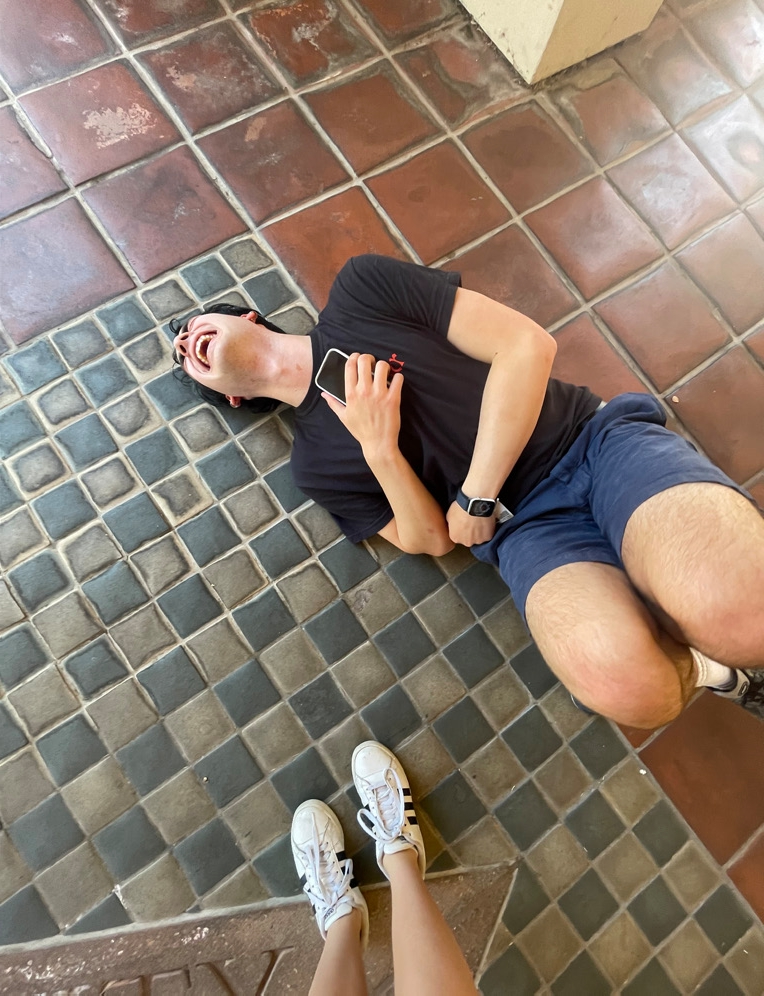 Whenever Parker and I would say something embarrassing aloud and we thought people heard us, we would look at each other, start running away from the scene, stop, and collapse on the floor laughing (see attached photos). He’d always make me laugh the hardest.