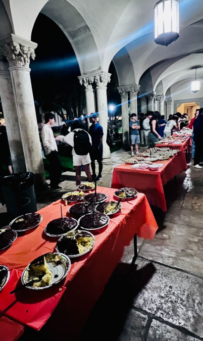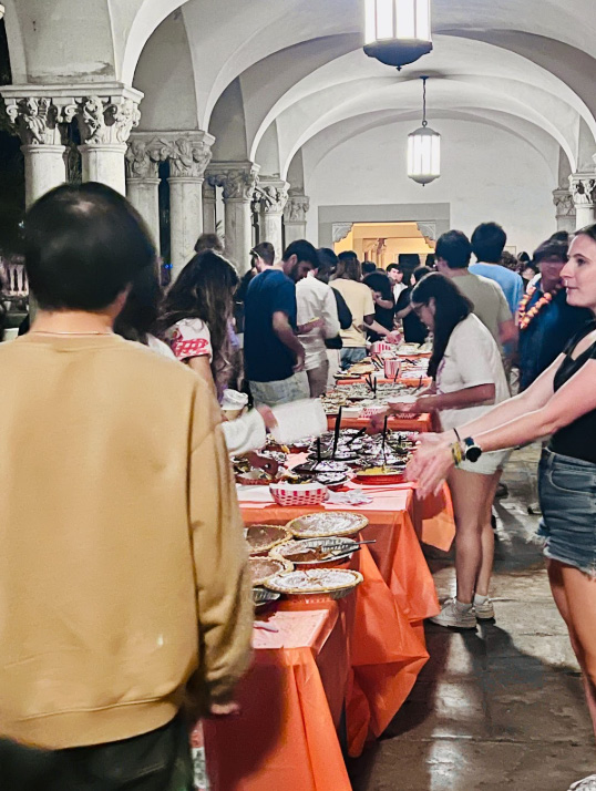 Thanks to the Interhouse Committee, Caltech’s Pi Day tradition rose again this year — a very Caltech study break for a very Caltech finals season. The well-rounded celebration happened right on schedule at 1:59 a.m. on March 14, where night-owl pi(e) enthusiasts converged in the Ricketts-Fleming courtyard for an event that was, by all measures, irrationally extravagant. The revival came with a mass order of Sysco pies: pumpkin, lemon meringue, apple, and seemingly every flavor imaginable.
