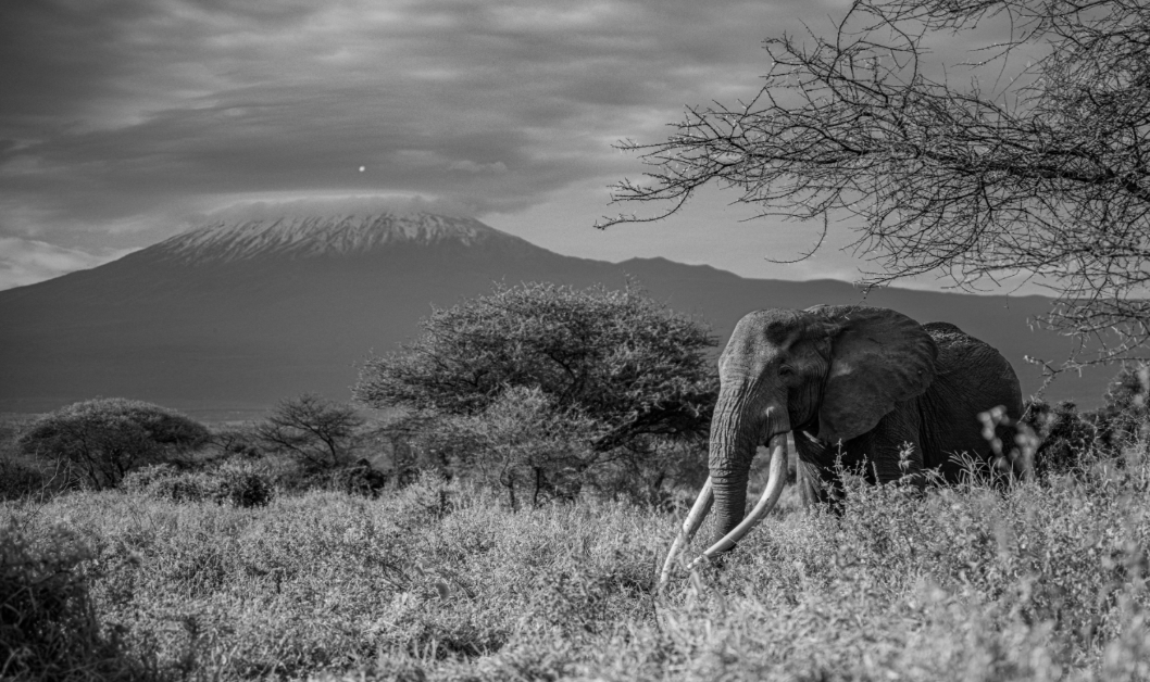 Craig, one of Kenya’s last remaining “super tuskers,” roams Amboseli National Park with the iconic Mount Kilimanjaro in the background. (Photo: Nitin Madhav)